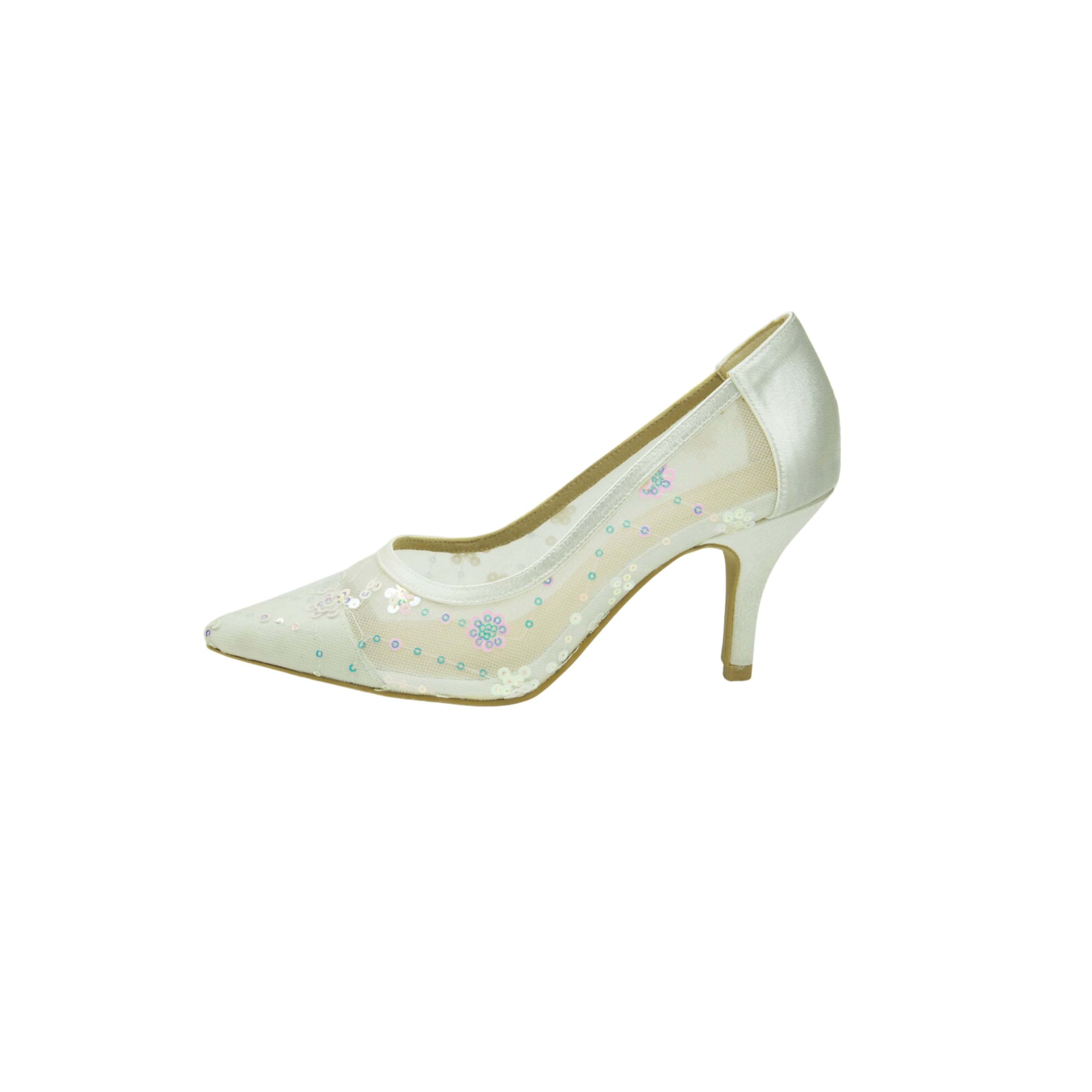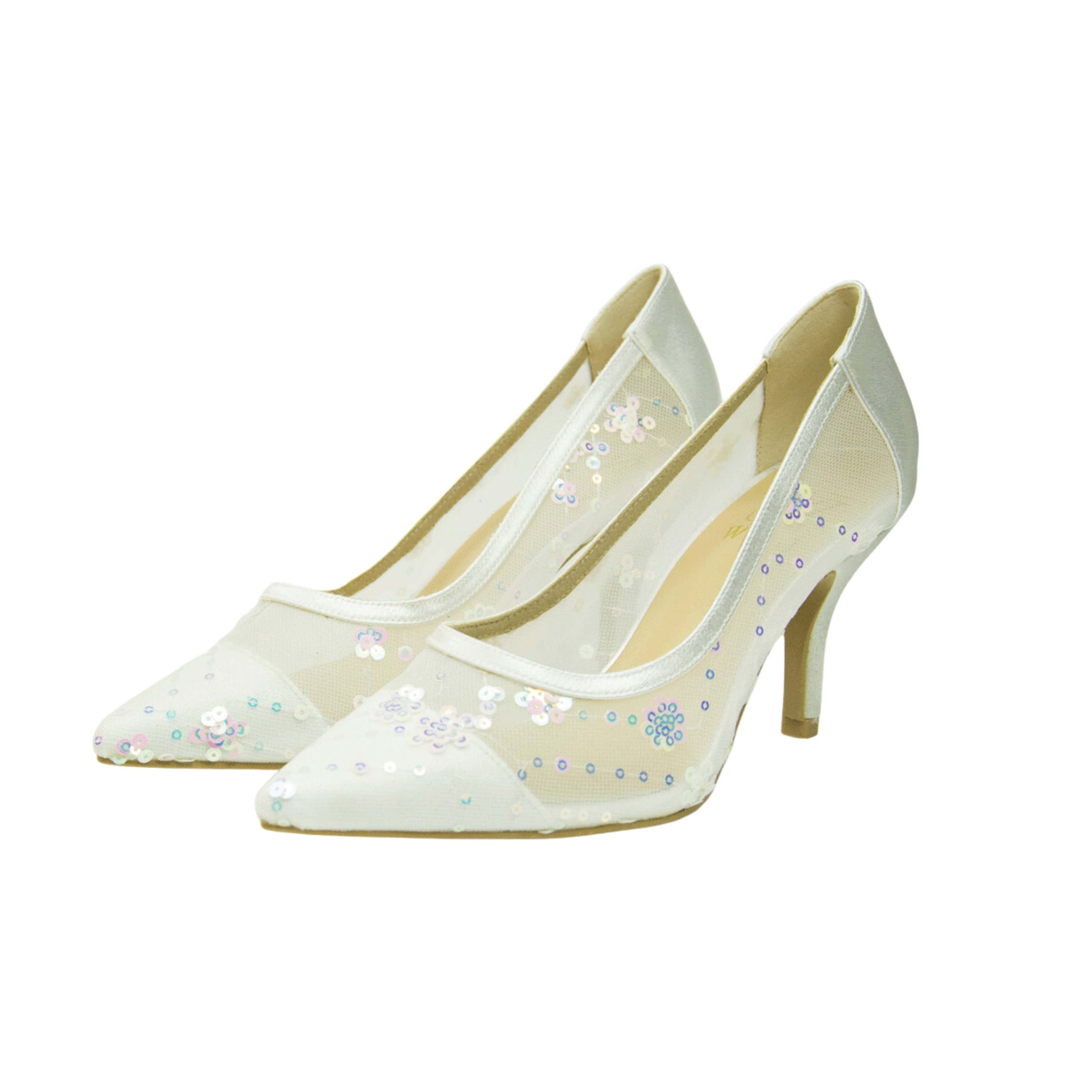 This Bridal Wedding Shoes offer a flawless combination of elegance and comfort. These graceful heels, adorned with intricate lace and sparkling heart-shaped embellishments, shine with every step. The beautifully designed heels provide both style and stability, making them perfect for the bride who seeks sophistication without compromising on comfort. With their delicate detailing and glamorous accents, these shoes are the ultimate choice for adding a touch of charm and luxury to your special day.
